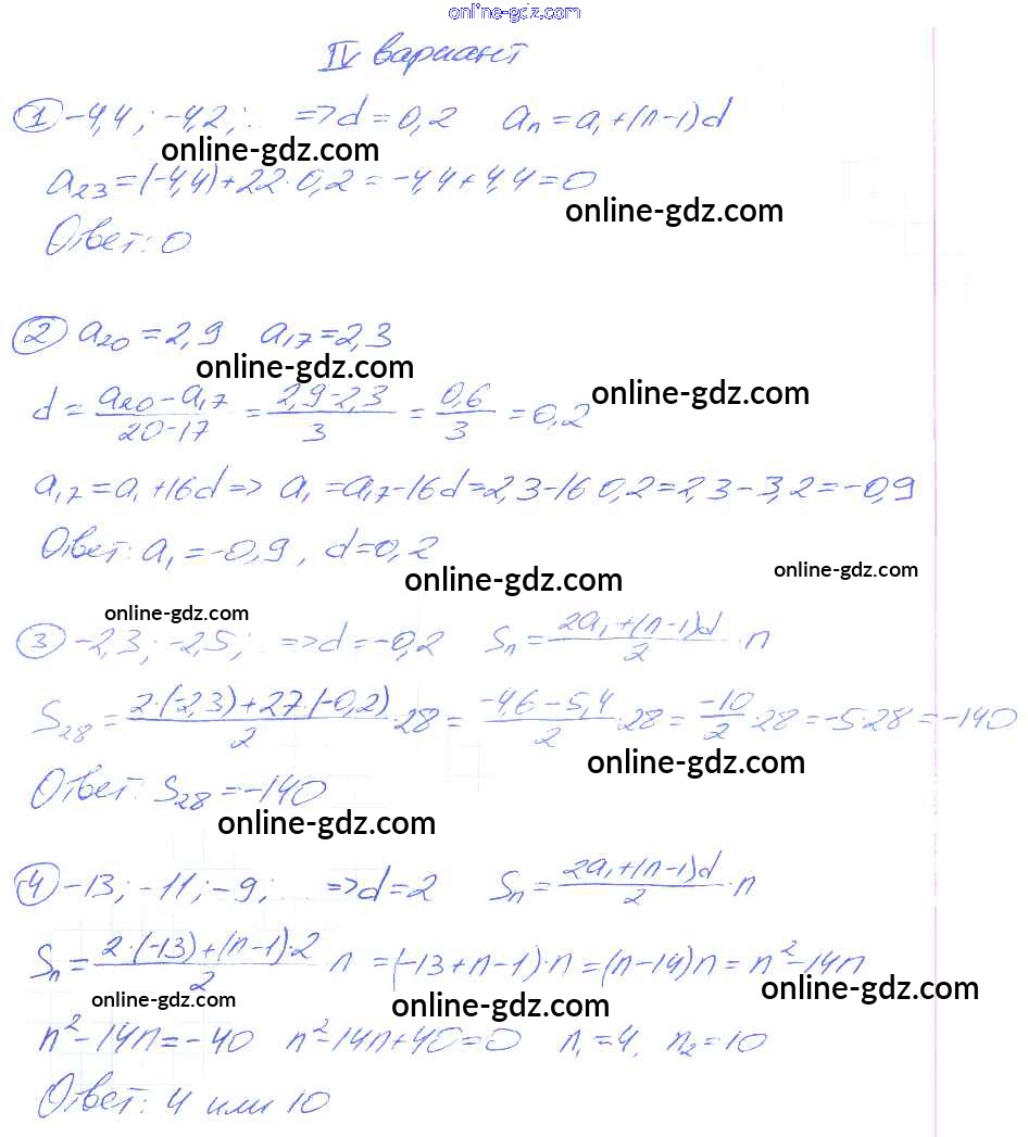 Готовые домашние задания по Алгебре за 9 класс Дидактические материалы Потапов, Шевкин МГУ - школе 2010 - СР №18. Арифметическая прогрессия Самостоятельные работы вариант 4