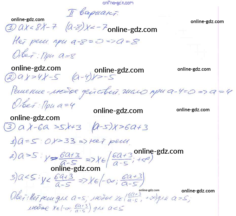 Готовые домашние задания по Алгебре за 9 класс Дидактические материалы Потапов, Шевкин МГУ - школе 2010 - СР №2. Линейные неравенства с параметром Самостоятельные работы вариант 2