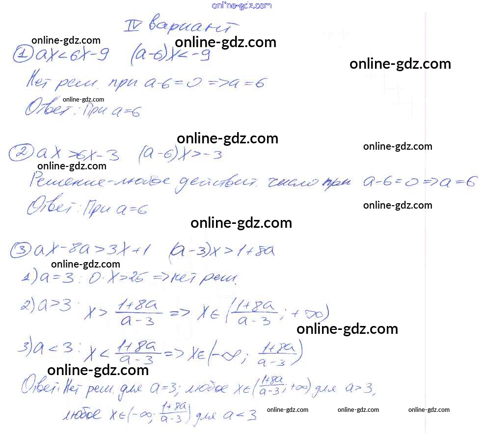 Готовые домашние задания по Алгебре за 9 класс Дидактические материалы Потапов, Шевкин МГУ - школе 2010 - СР №2. Линейные неравенства с параметром Самостоятельные работы вариант 4