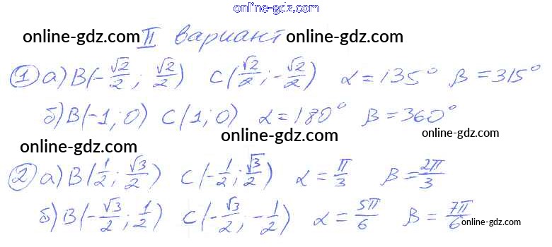 Готовые домашние задания по Алгебре за 9 класс Дидактические материалы Потапов, Шевкин МГУ - школе 2010 - СР №22. Координаты некоторых точек единичной окружности Самостоятельные работы вариант 2