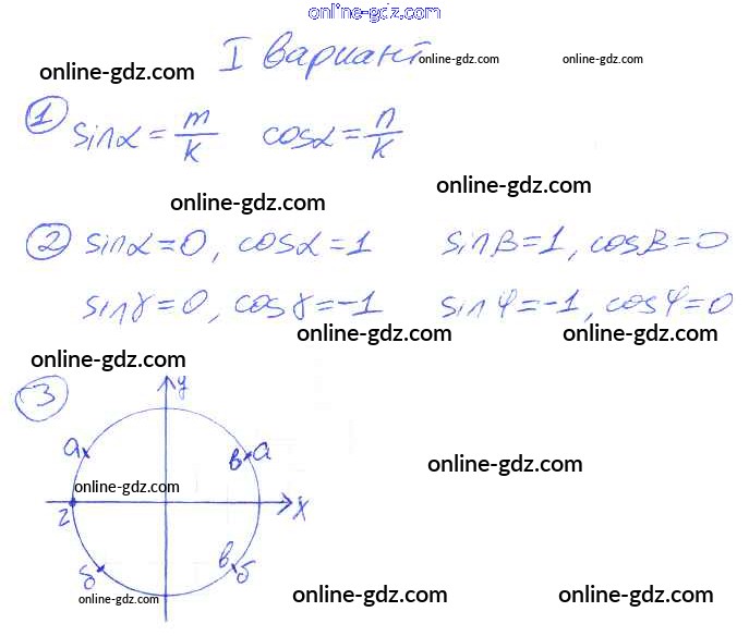 Готовые домашние задания по Алгебре за 9 класс Дидактические материалы Потапов, Шевкин МГУ - школе 2010 - СР №23. Синус и косинус угла Самостоятельные работы вариант 1