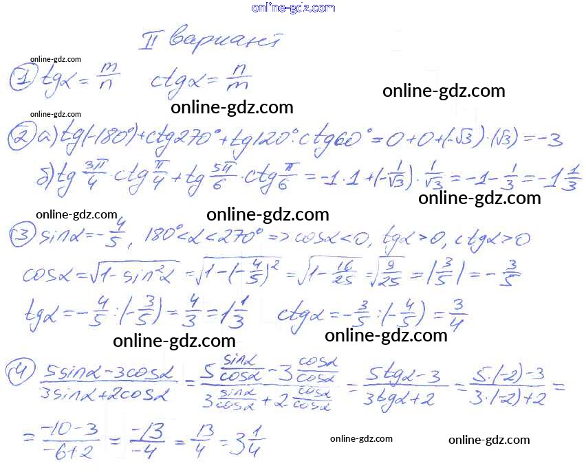 Готовые домашние задания по Алгебре за 9 класс Дидактические материалы Потапов, Шевкин МГУ - школе 2010 - СР №25. Тангенс и котангенс угла Самостоятельные работы вариант 2