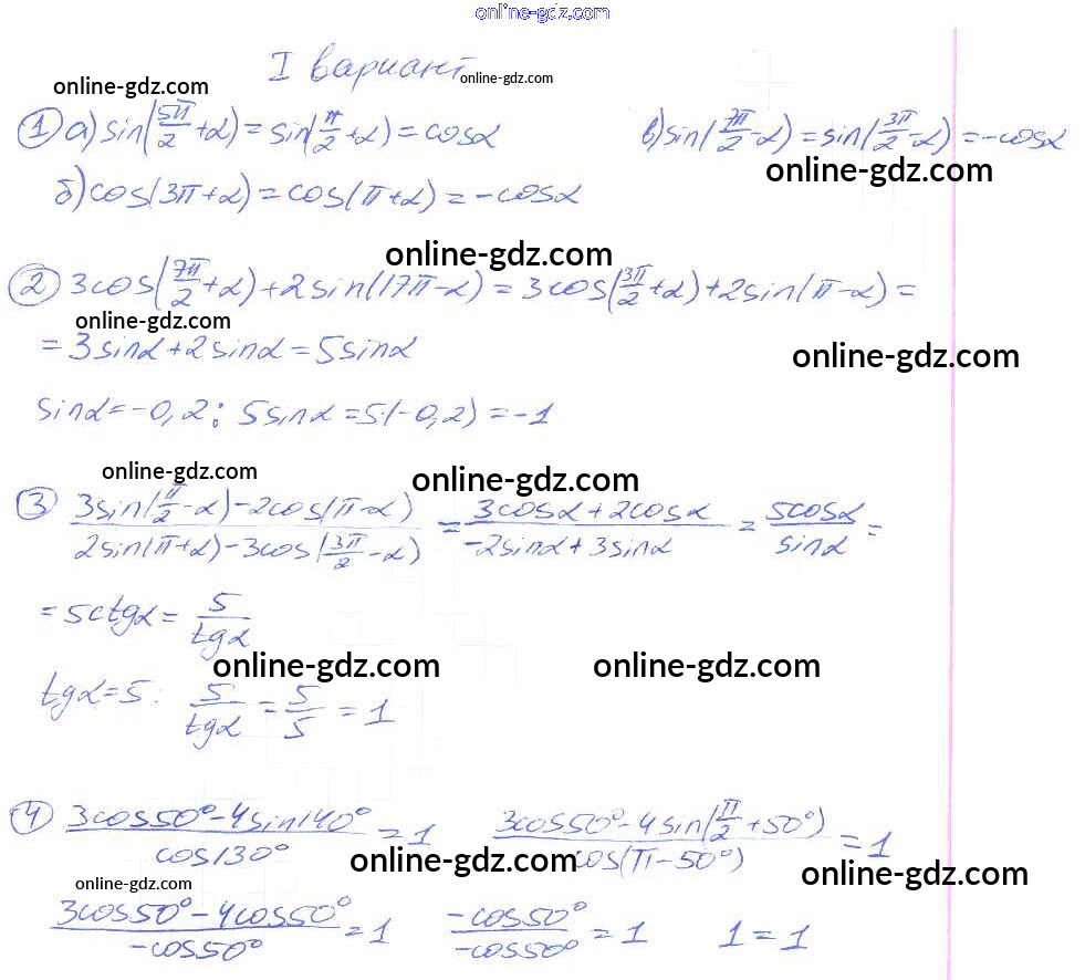 Готовые домашние задания по Алгебре за 9 класс Дидактические материалы Потапов, Шевкин МГУ - школе 2010 - СР №27. Формулы приведения для синуса и косинуса Самостоятельные работы вариант 1