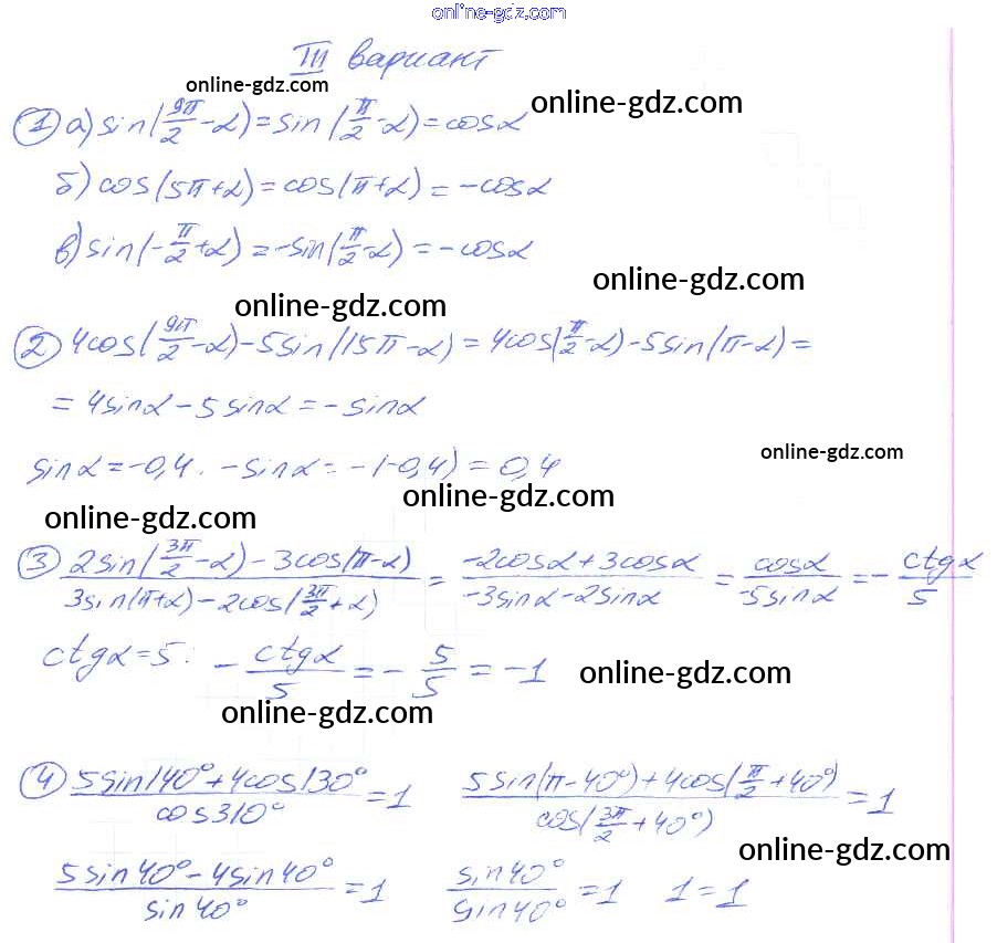 Готовые домашние задания по Алгебре за 9 класс Дидактические материалы Потапов, Шевкин МГУ - школе 2010 - СР №27. Формулы приведения для синуса и косинуса Самостоятельные работы вариант 3