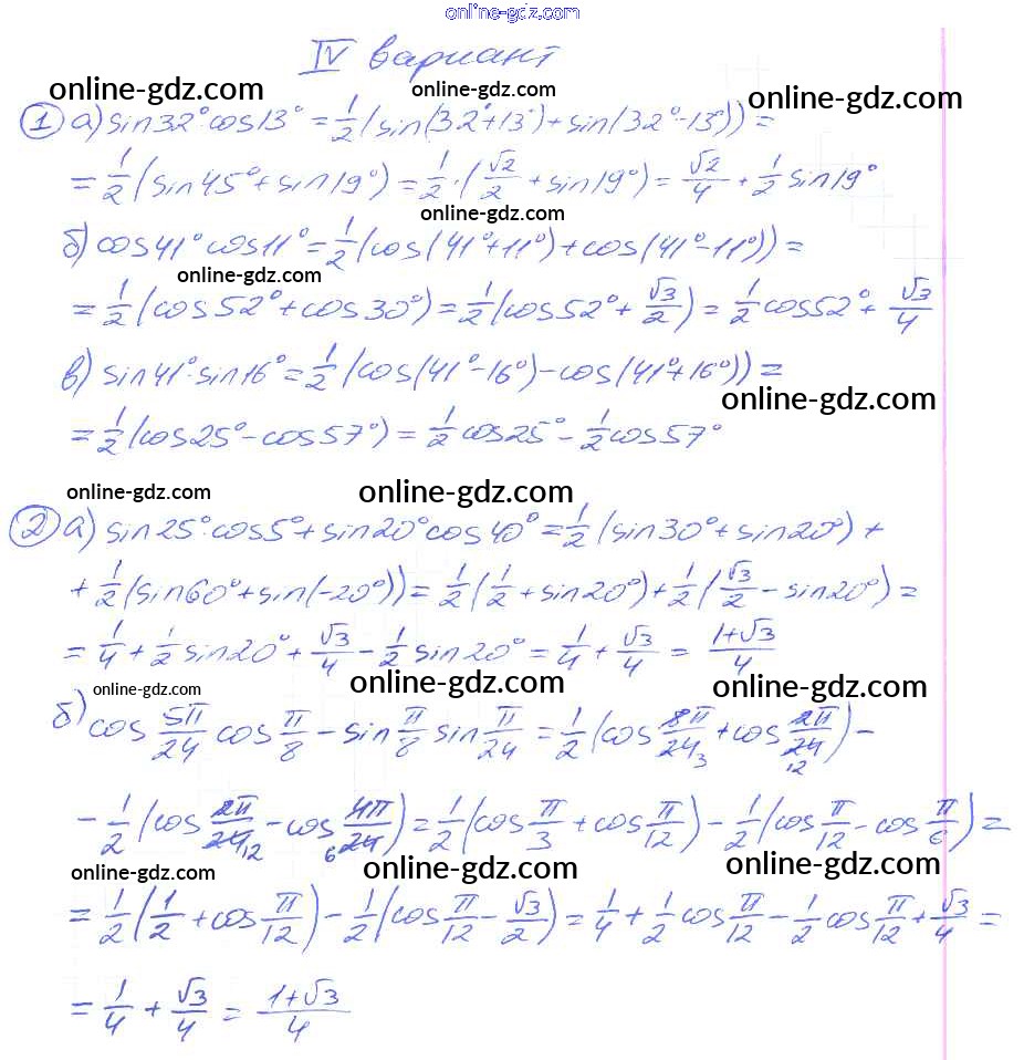Готовые домашние задания по Алгебре за 9 класс Дидактические материалы Потапов, Шевкин МГУ - школе 2010 - СР №30. Произведения синусов и косинусов Самостоятельные работы вариант 4