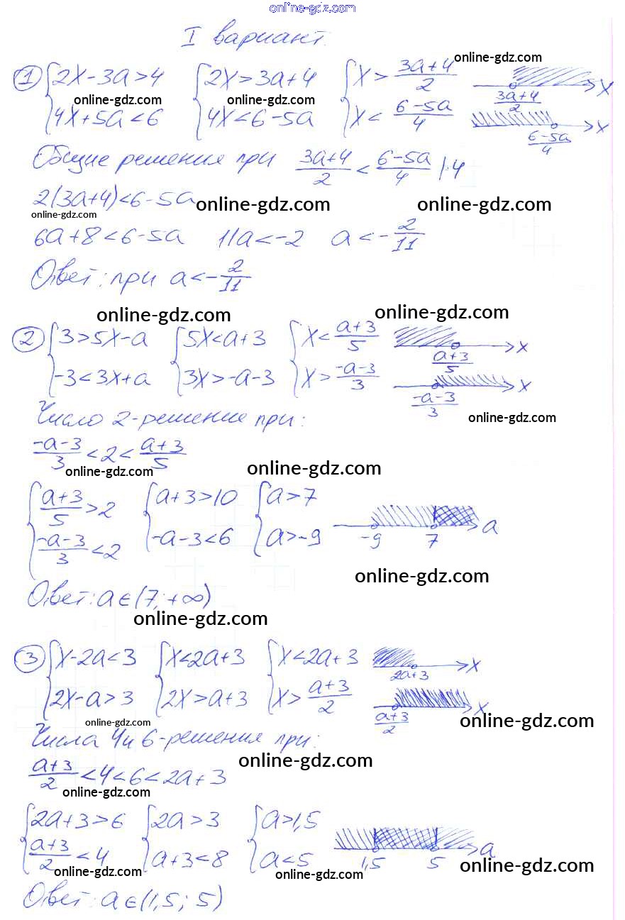 Готовые домашние задания по Алгебре за 9 класс Дидактические материалы Потапов, Шевкин МГУ - школе 2010 - СР №4. Системы линейных неравенств с параметром Самостоятельные работы вариант 1
