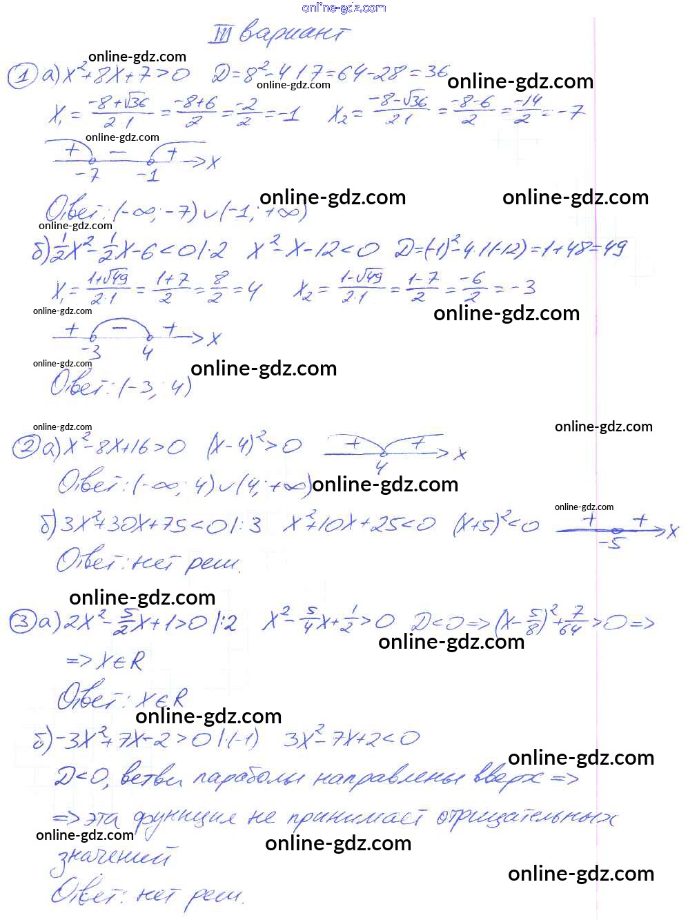 Готовые домашние задания по Алгебре за 9 класс Дидактические материалы Потапов, Шевкин МГУ - школе 2010 - СР №5. Неравенства второй степени Самостоятельные работы вариант 3