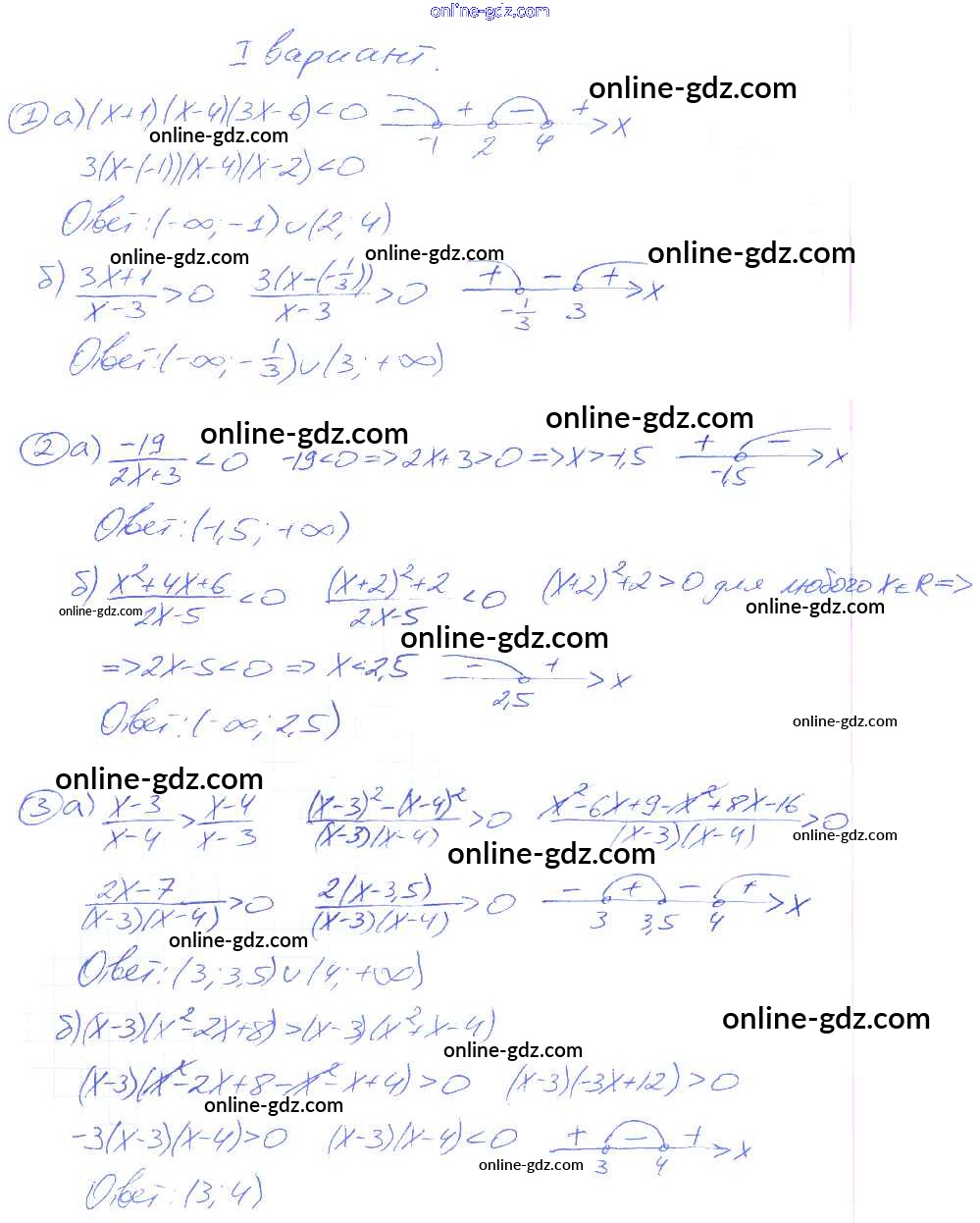 Готовые домашние задания по Алгебре за 9 класс Дидактические материалы Потапов, Шевкин МГУ - школе 2010 - СР №7. Рациональные неравенства Самостоятельные работы вариант 1