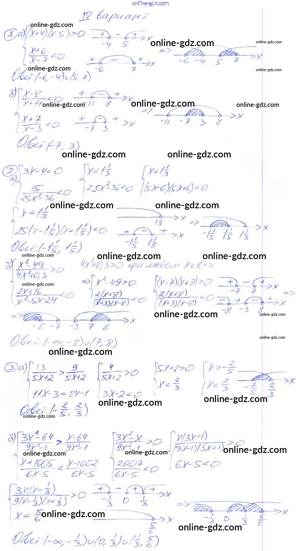 Готовые домашние задания по Алгебре за 9 класс Дидактические материалы Потапов, Шевкин МГУ - школе 2010 - СР №9. Системы рациональных неравенств Самостоятельные работы вариант 4