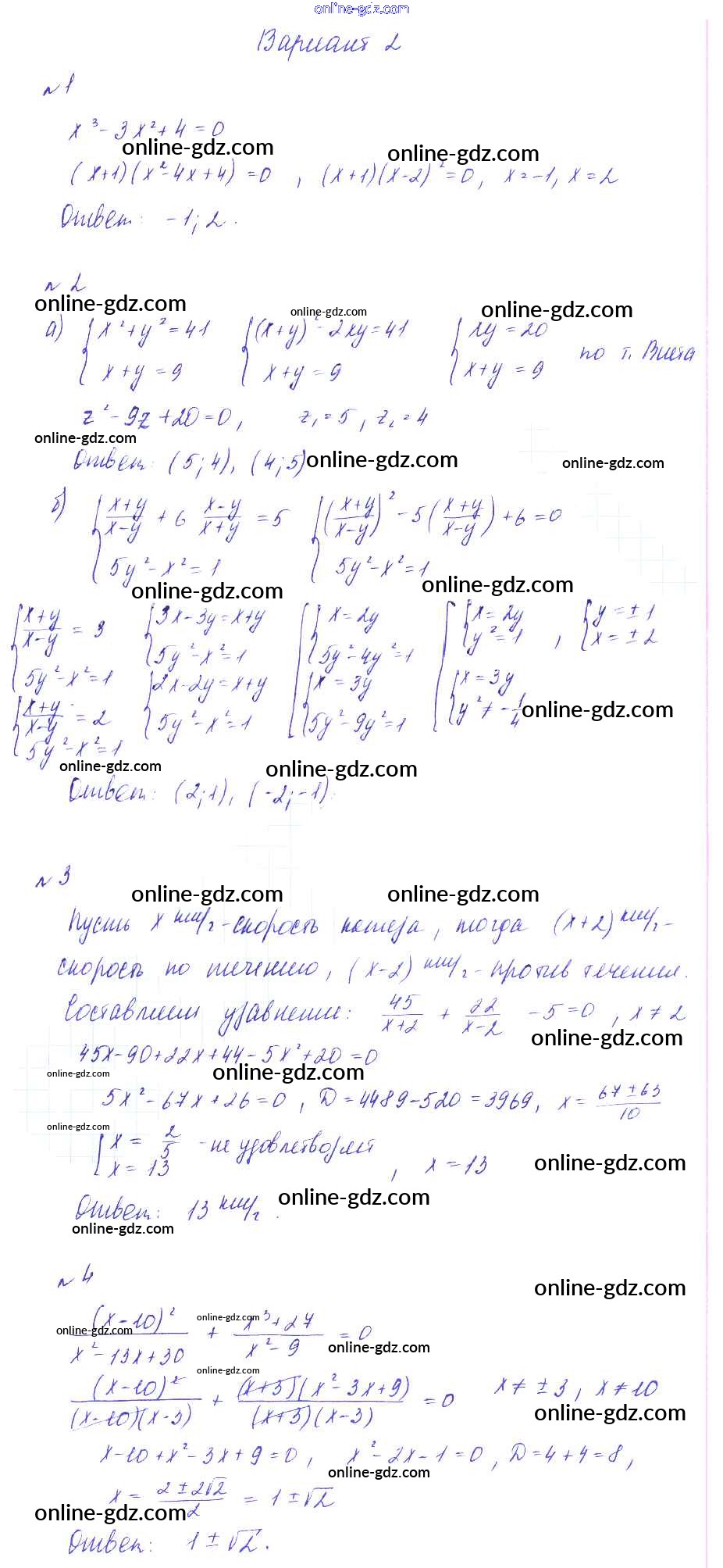 Готовые домашние задания по Алгебре за 9 класс Дидактические материалы Зив, Гольдич 2013 - КР-1. Алгебраические уравнения. Системы алгебраических уравнений Контрольные работы вариант 2