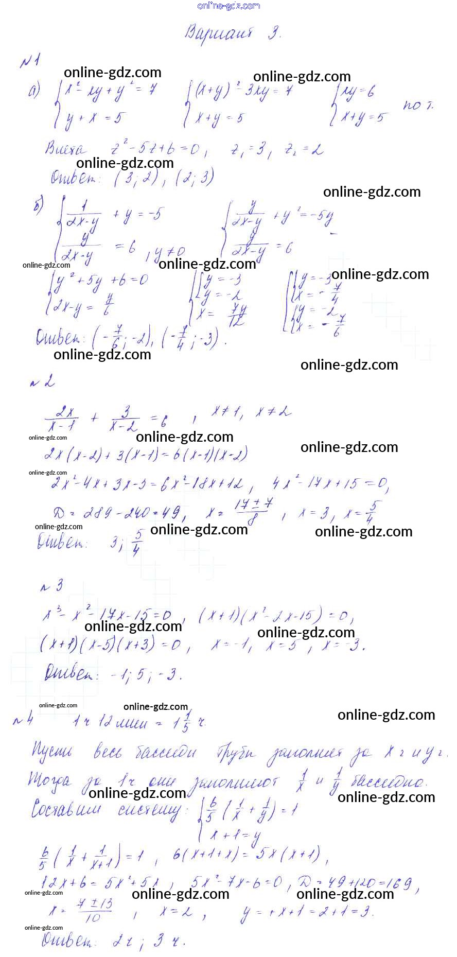 Готовые домашние задания по Алгебре за 9 класс Дидактические материалы Зив, Гольдич 2013 - КР-1. Алгебраические уравнения. Системы алгебраических уравнений Контрольные работы вариант 3