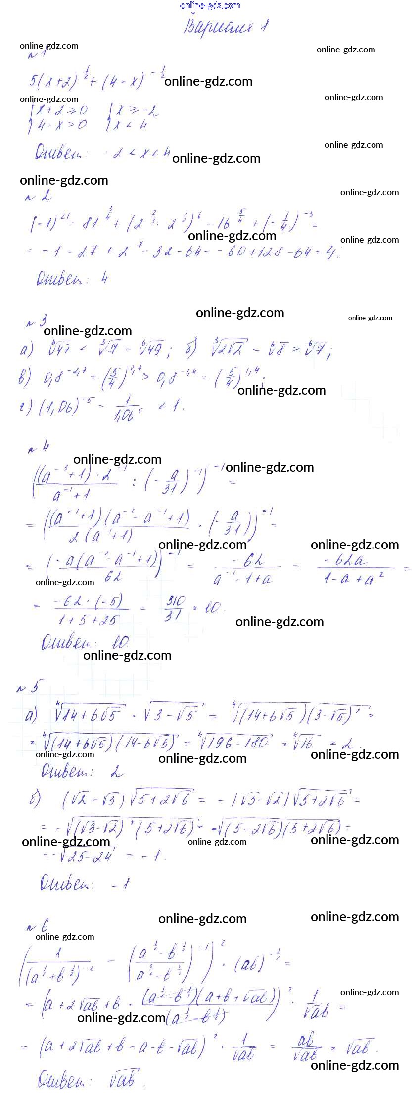 Готовые домашние задания по Алгебре за 9 класс Дидактические материалы Зив, Гольдич 2013 - КР-2. Степень с рациональным показателем Контрольные работы вариант 1