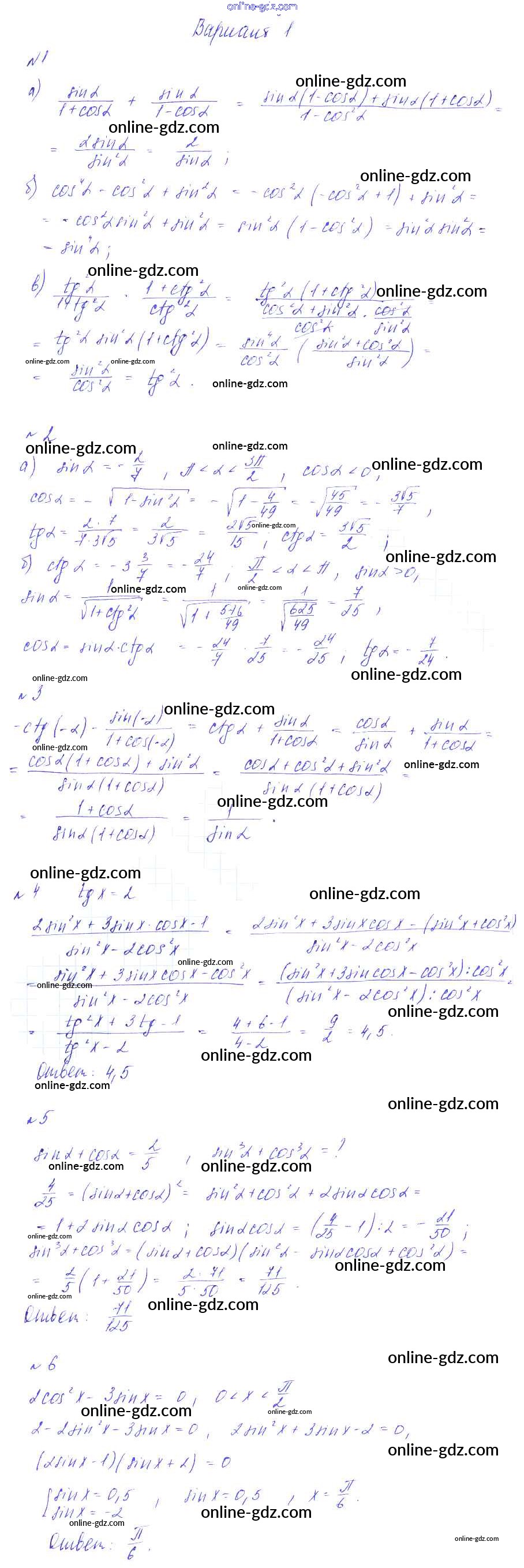Готовые домашние задания по Алгебре за 9 класс Дидактические материалы Зив, Гольдич 2013 - КР-4. Основные тригонометрические тождества Контрольные работы вариант 1
