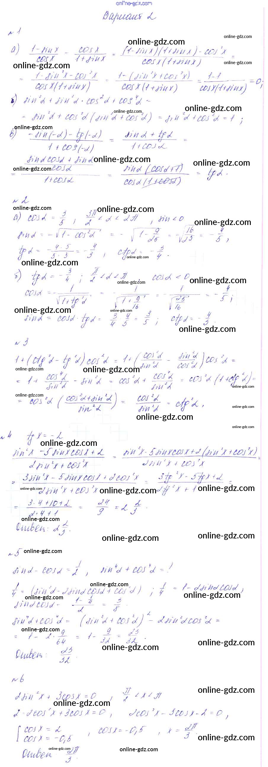 Готовые домашние задания по Алгебре за 9 класс Дидактические материалы Зив, Гольдич 2013 - КР-4. Основные тригонометрические тождества Контрольные работы вариант 2