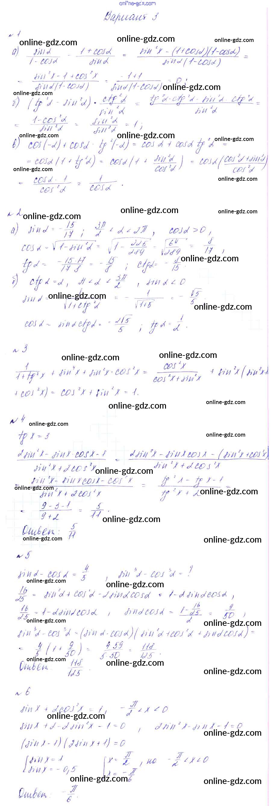 Готовые домашние задания по Алгебре за 9 класс Дидактические материалы Зив, Гольдич 2013 - КР-4. Основные тригонометрические тождества Контрольные работы вариант 3
