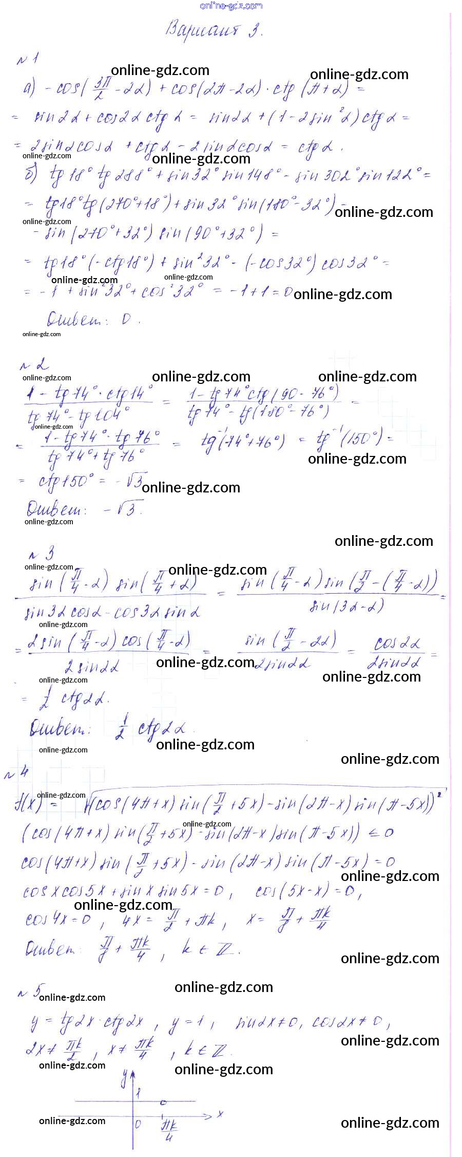 Готовые домашние задания по Алгебре за 9 класс Дидактические материалы Зив, Гольдич 2013 - КР-5. Формулы сложения. Формулы приведения Контрольные работы вариант 3