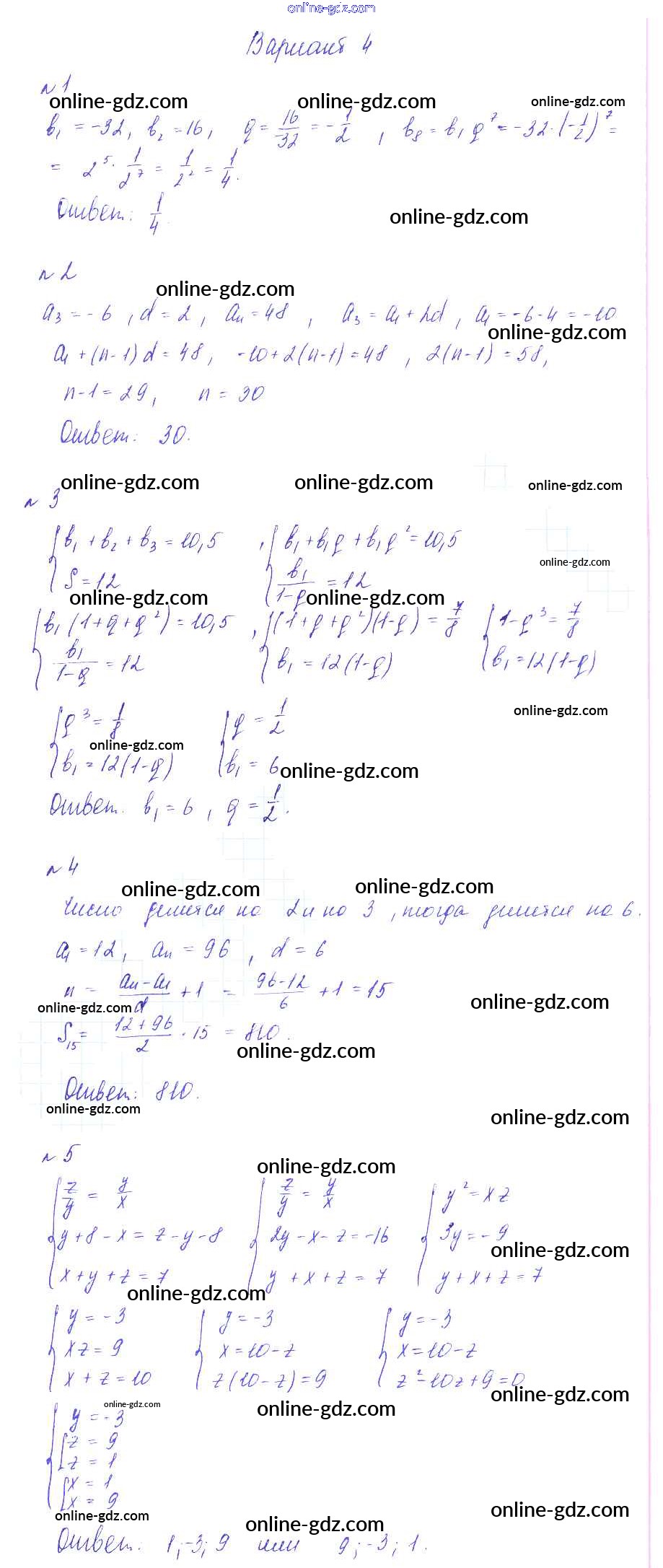 Готовые домашние задания по Алгебре за 9 класс Дидактические материалы Зив, Гольдич 2013 - КР-6. Прогрессии Контрольные работы вариант 4
