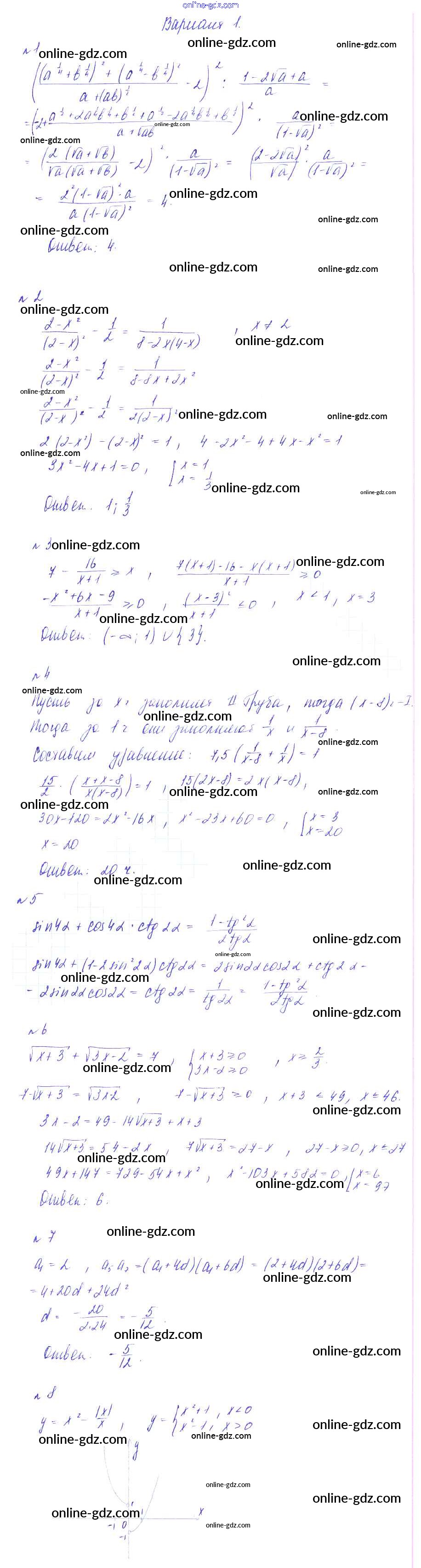 Готовые домашние задания по Алгебре за 9 класс Дидактические материалы Зив, Гольдич 2013 - КР-7. Итоговая Контрольные работы вариант 1