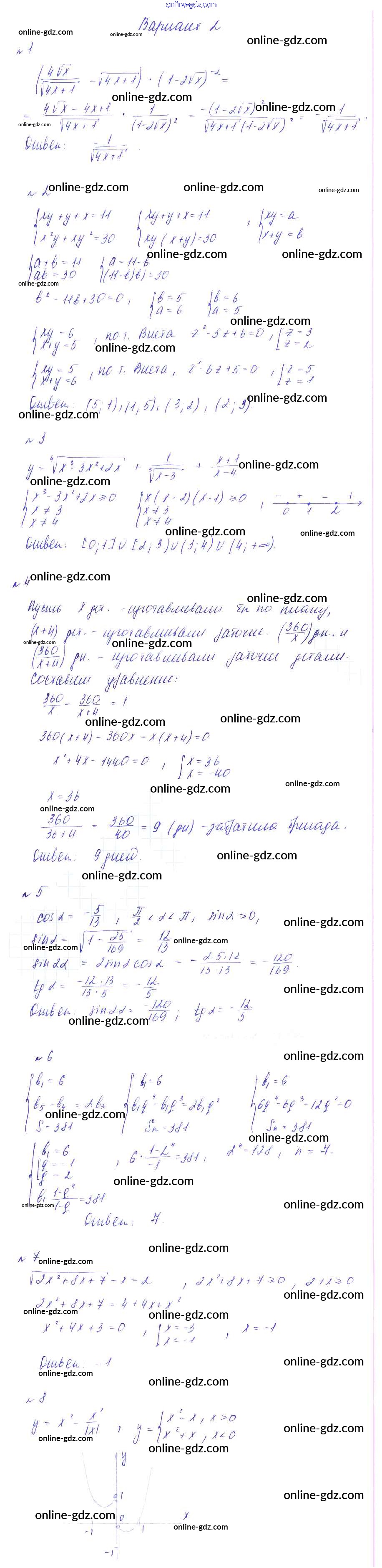 Готовые домашние задания по Алгебре за 9 класс Дидактические материалы Зив, Гольдич 2013 - КР-7. Итоговая Контрольные работы вариант 2