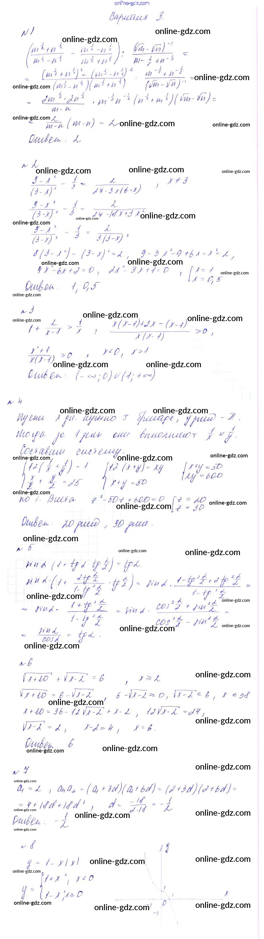 Готовые домашние задания по Алгебре за 9 класс Дидактические материалы Зив, Гольдич 2013 - КР-7. Итоговая Контрольные работы вариант 3