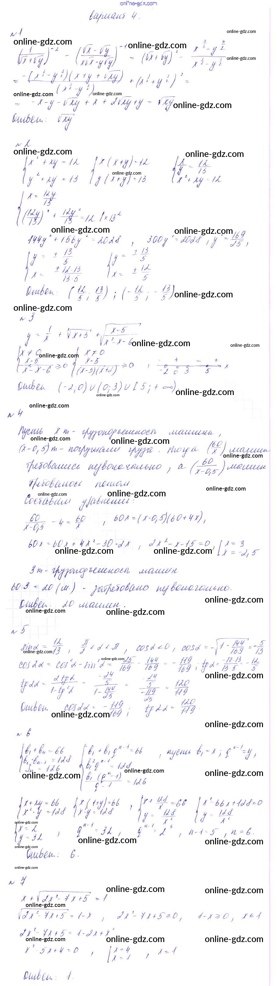 Готовые домашние задания по Алгебре за 9 класс Дидактические материалы Зив, Гольдич 2013 - КР-7. Итоговая Контрольные работы вариант 4
