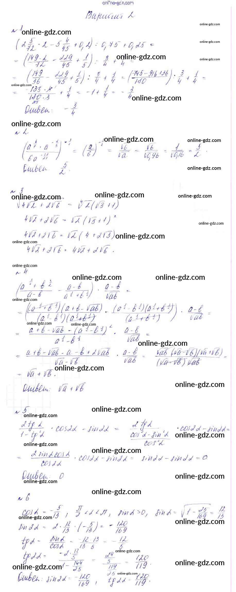 Готовые домашние задания по Алгебре за 9 класс Дидактические материалы Зив, Гольдич 2013 - ПР-1 Проверочные работы на повторение вариант 2