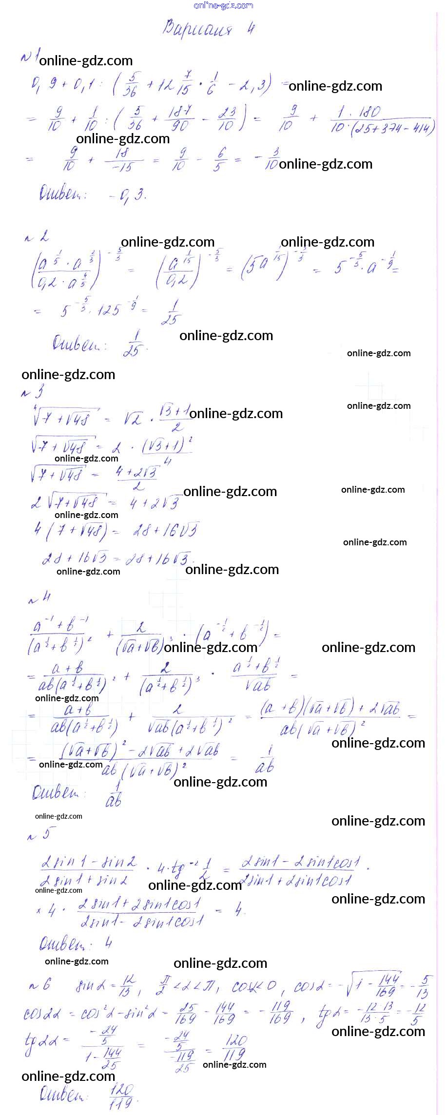 Готовые домашние задания по Алгебре за 9 класс Дидактические материалы Зив, Гольдич 2013 - ПР-1 Проверочные работы на повторение вариант 4