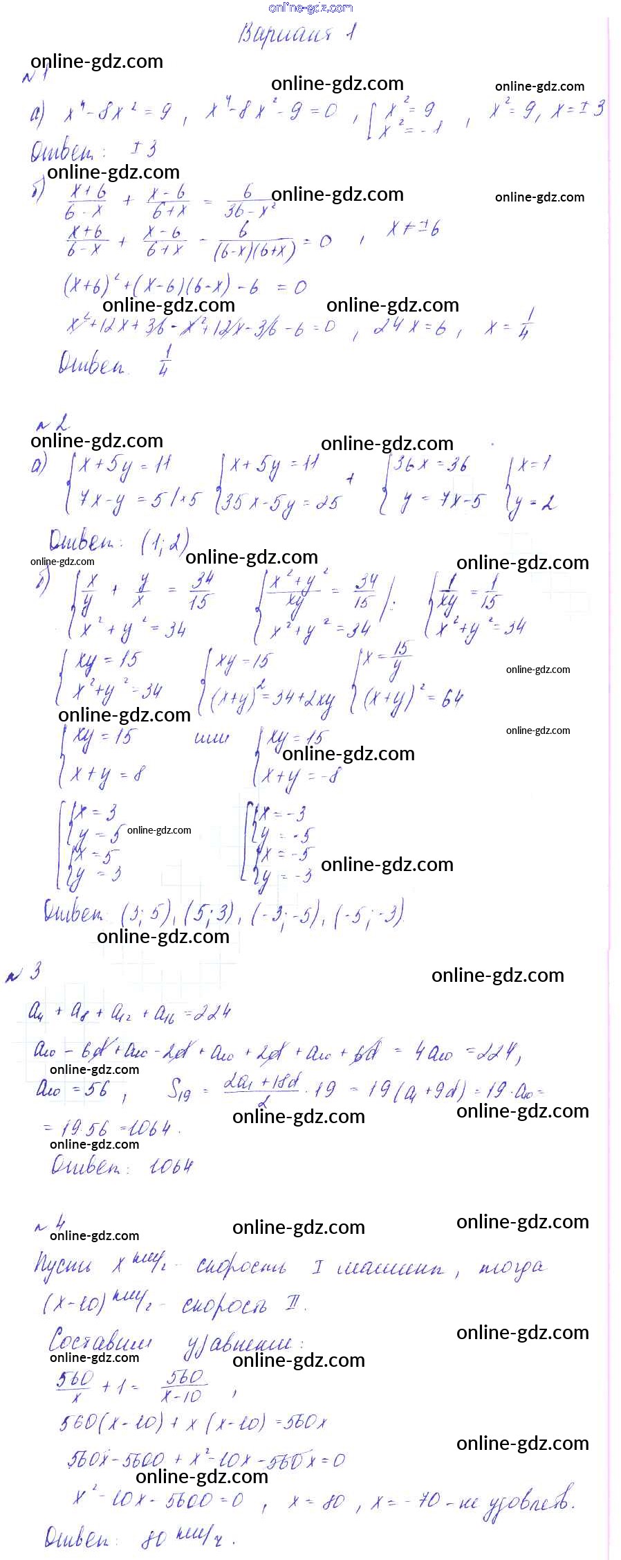 Готовые домашние задания по Алгебре за 9 класс Дидактические материалы Зив, Гольдич 2013 - ПР-2 Проверочные работы на повторение вариант 1