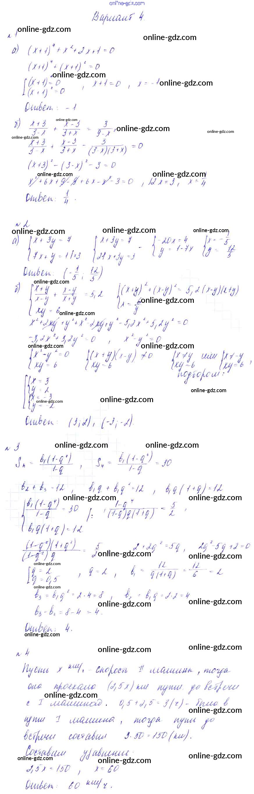Готовые домашние задания по Алгебре за 9 класс Дидактические материалы Зив, Гольдич 2013 - ПР-2 Проверочные работы на повторение вариант 4
