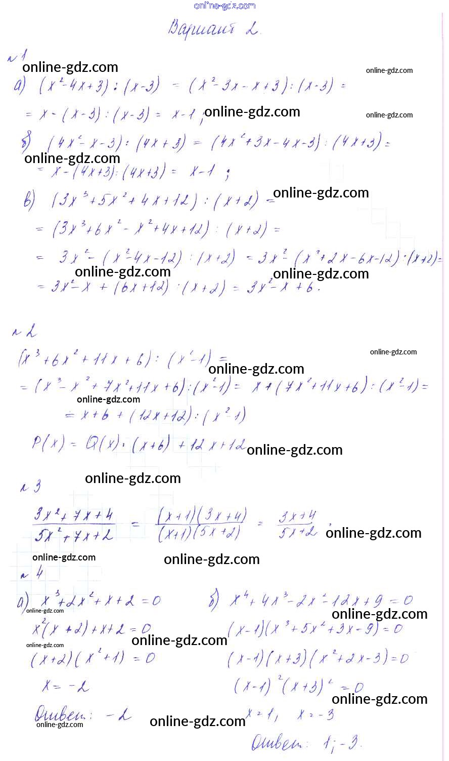 Готовые домашние задания по Алгебре за 9 класс Дидактические материалы Зив, Гольдич 2013 - СР-1. Деление многочленов. Решение алгебраических уравнений Самостоятельные работы вариант 2