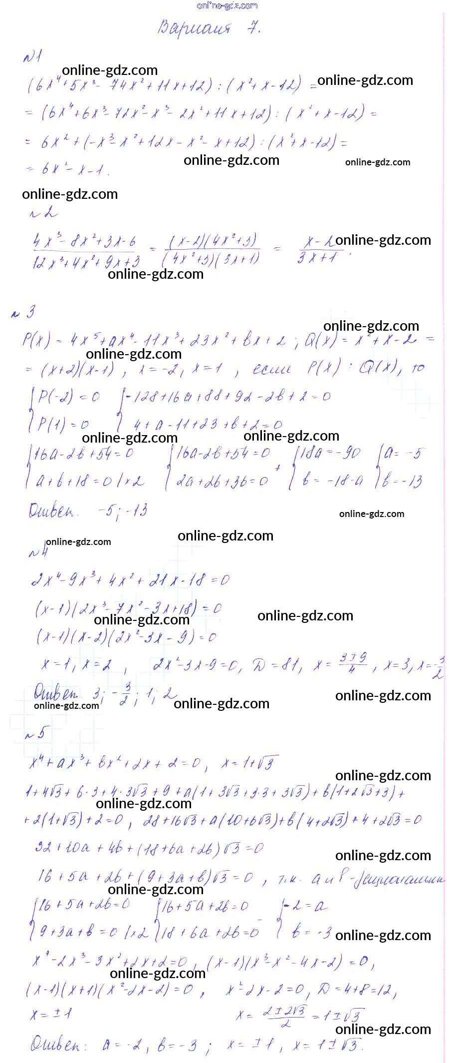Готовые домашние задания по Алгебре за 9 класс Дидактические материалы Зив, Гольдич 2013 - СР-1. Деление многочленов. Решение алгебраических уравнений Самостоятельные работы вариант 7