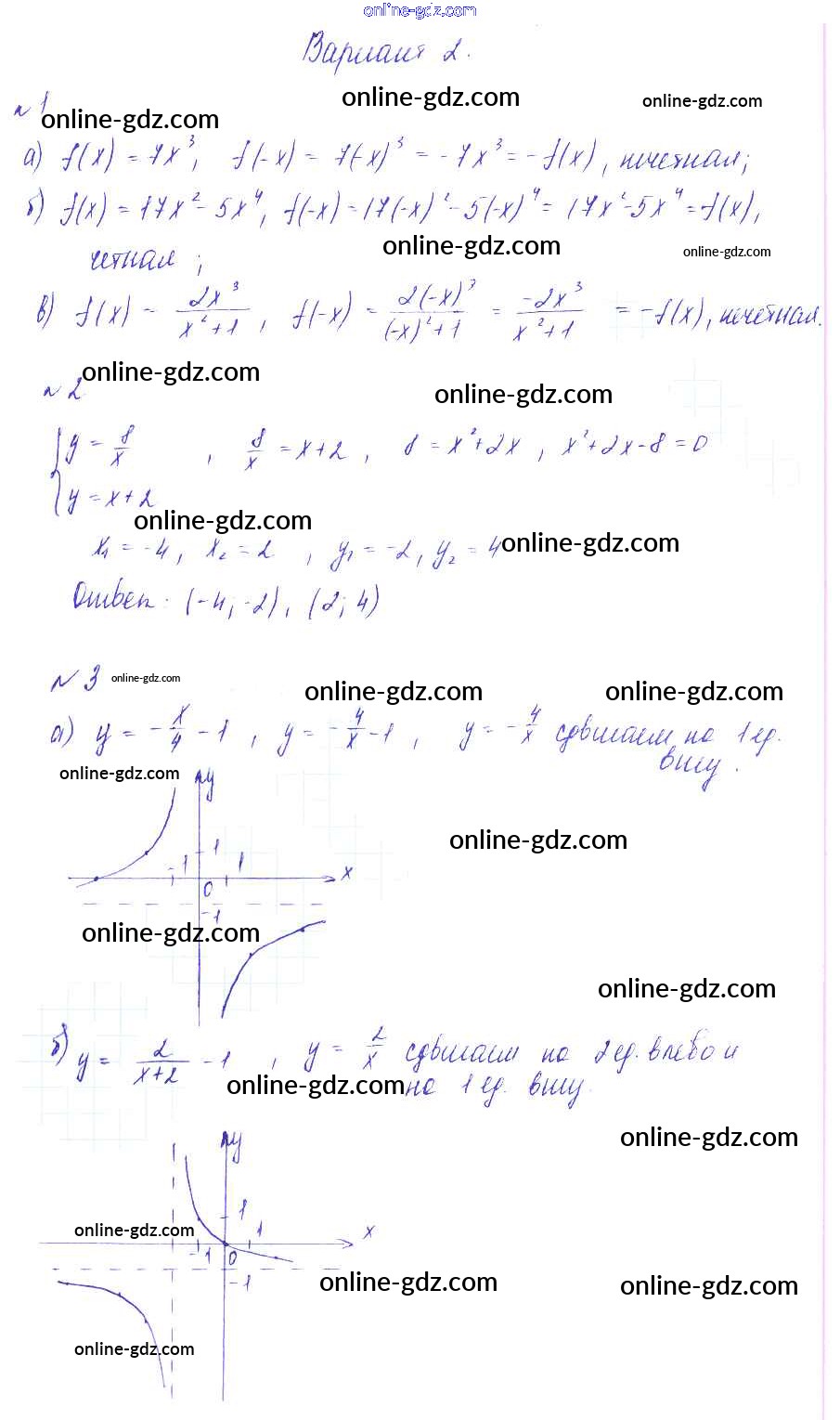 Готовые домашние задания по Алгебре за 9 класс Дидактические материалы Зив, Гольдич 2013 - СР-10. Четность и нечетность функции. Функция у = k делить на х Самостоятельные работы вариант 2