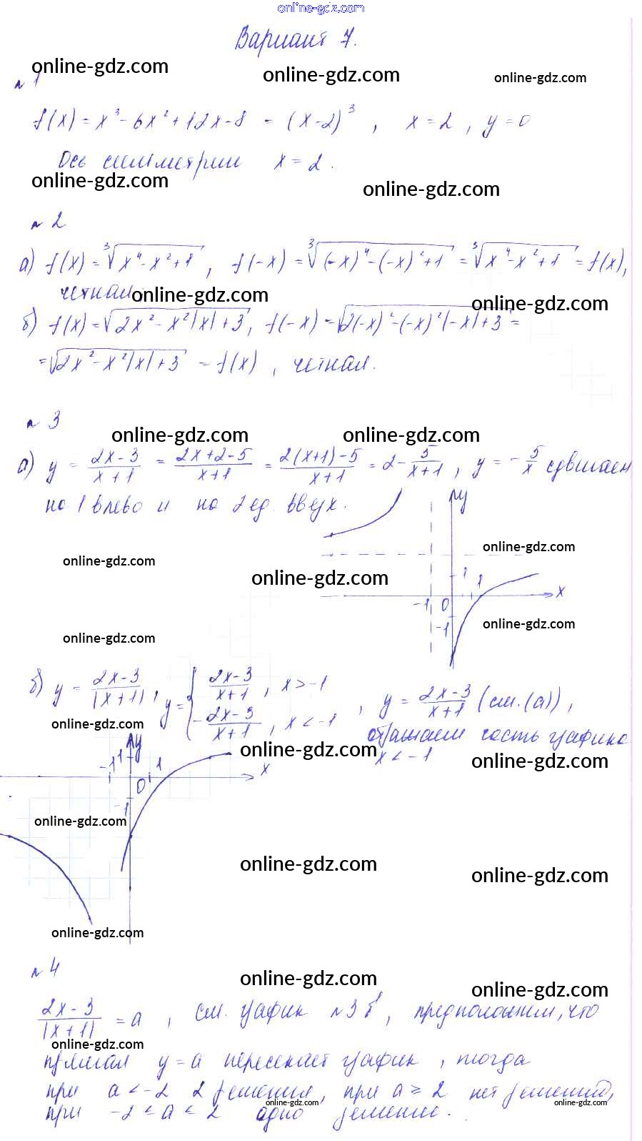 Готовые домашние задания по Алгебре за 9 класс Дидактические материалы Зив, Гольдич 2013 - СР-10. Четность и нечетность функции. Функция у = k делить на х Самостоятельные работы вариант 7