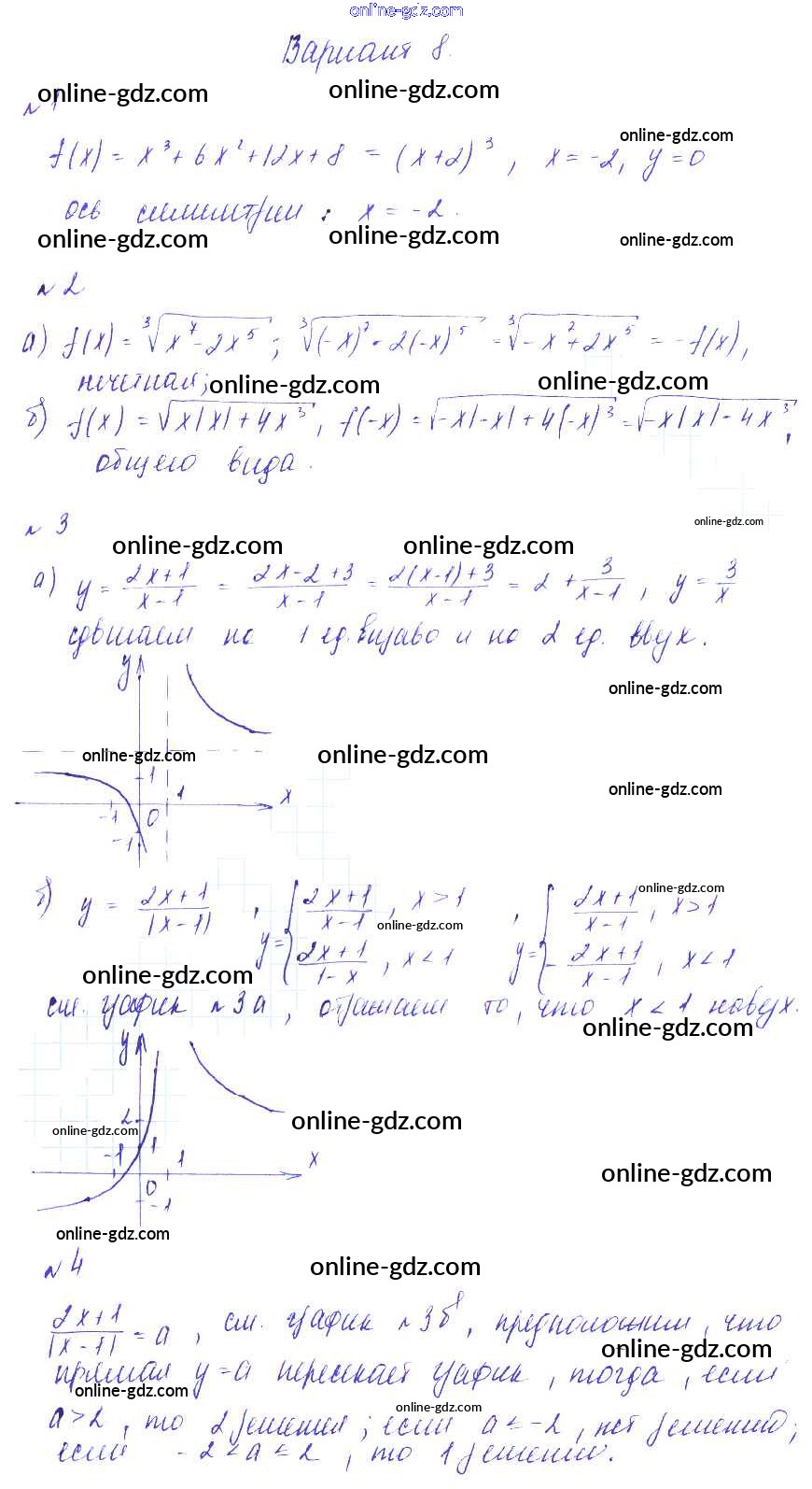 Готовые домашние задания по Алгебре за 9 класс Дидактические материалы Зив, Гольдич 2013 - СР-10. Четность и нечетность функции. Функция у = k делить на х Самостоятельные работы вариант 8