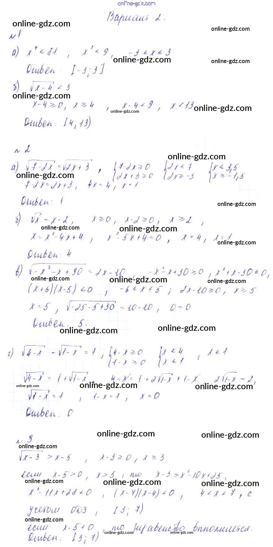 Готовые домашние задания по Алгебре за 9 класс Дидактические материалы Зив, Гольдич 2013 - СР-11. Неравенства и уравнения, содержащие степень Самостоятельные работы вариант 2