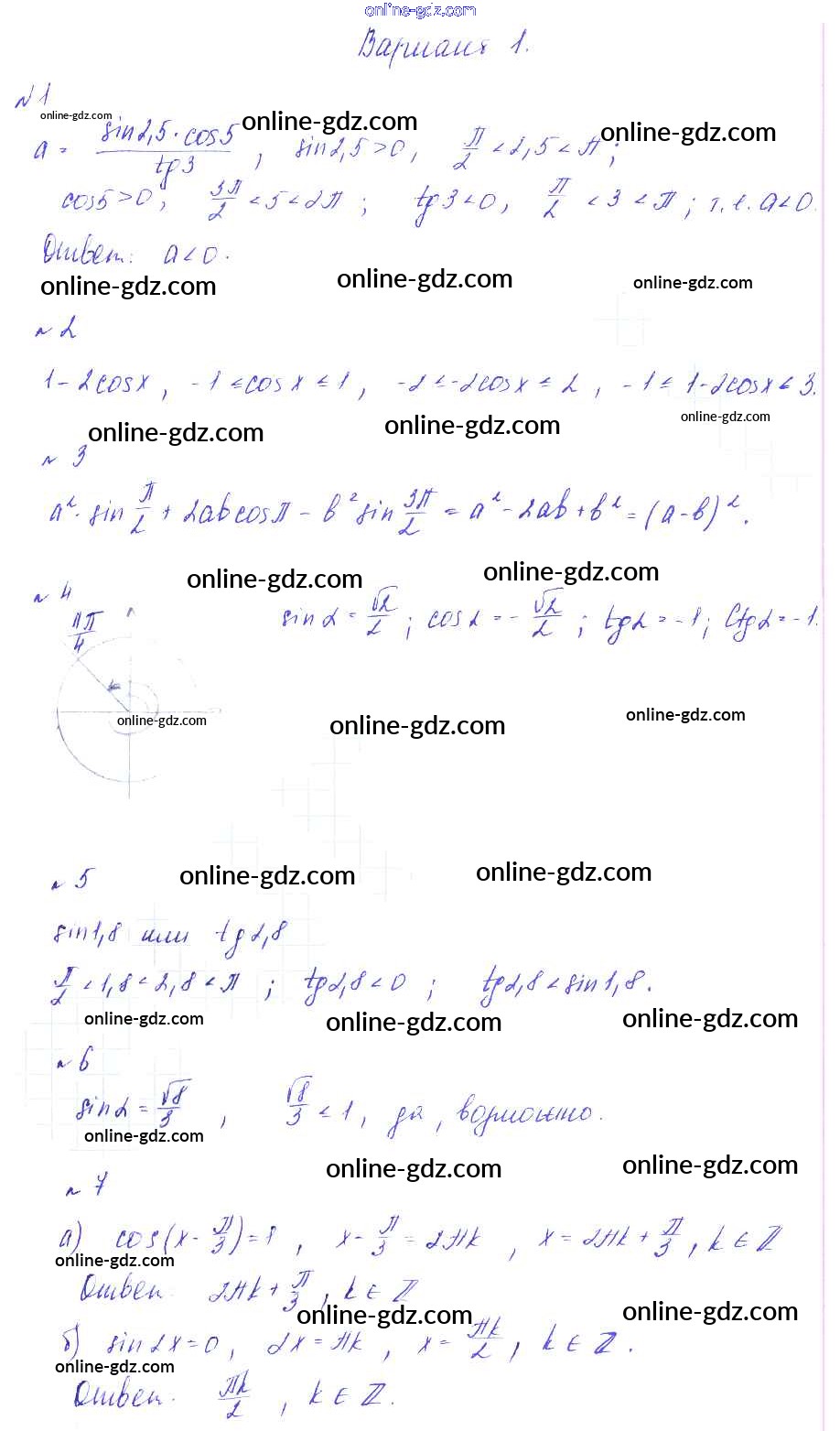 Готовые домашние задания по Алгебре за 9 класс Дидактические материалы Зив, Гольдич 2013 - СР-12. Радианная мера угла Самостоятельные работы вариант 1