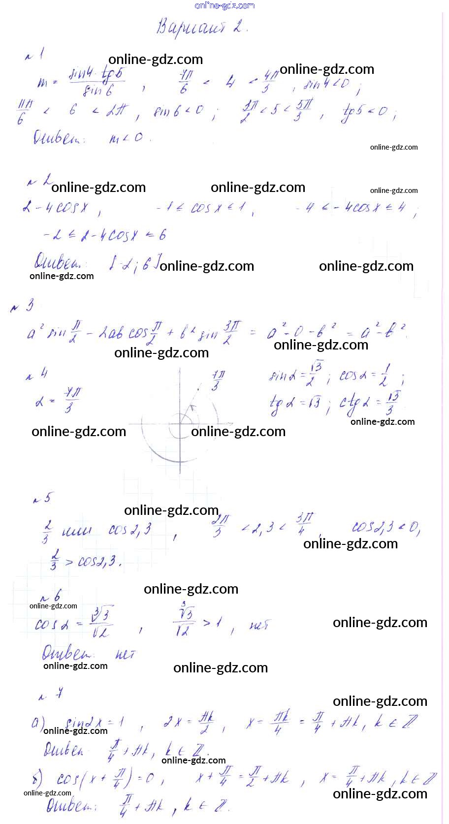 Готовые домашние задания по Алгебре за 9 класс Дидактические материалы Зив, Гольдич 2013 - СР-12. Радианная мера угла Самостоятельные работы вариант 2