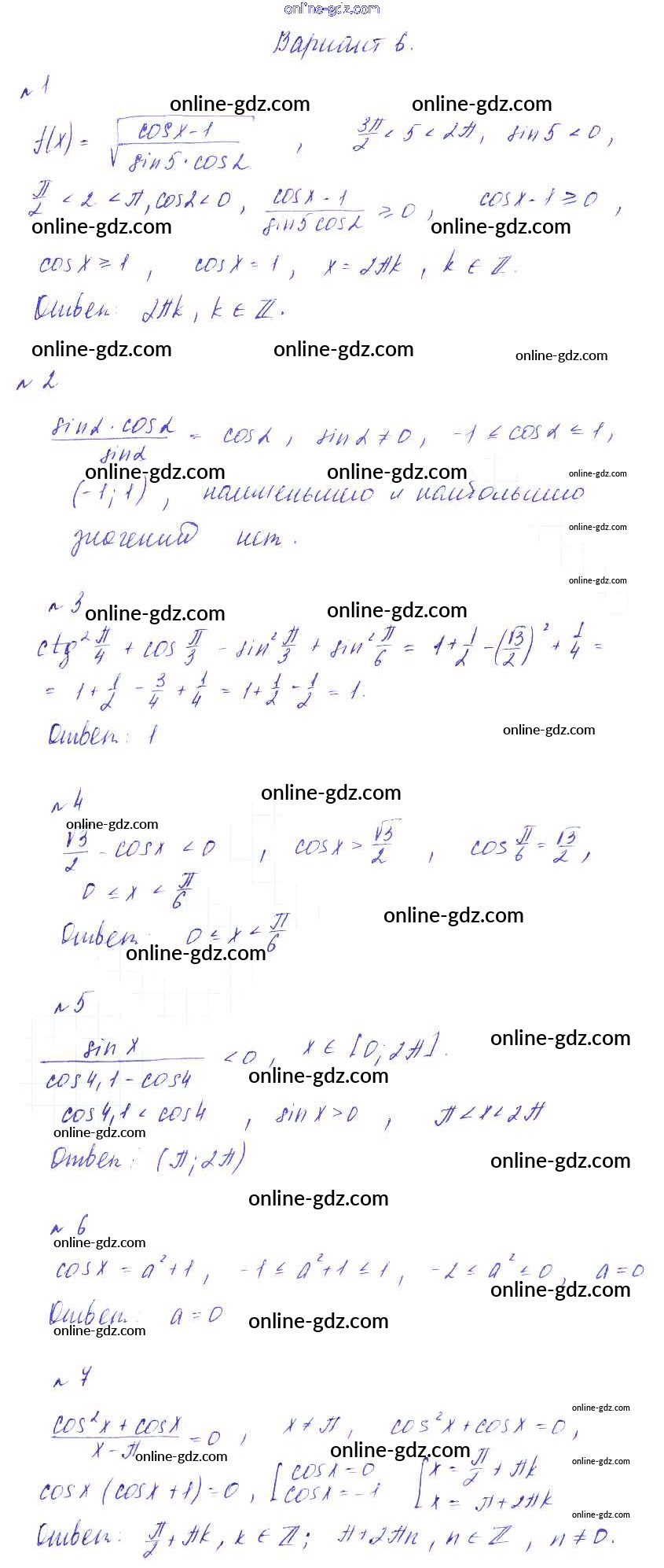 Готовые домашние задания по Алгебре за 9 класс Дидактические материалы Зив, Гольдич 2013 - СР-12. Радианная мера угла Самостоятельные работы вариант 6
