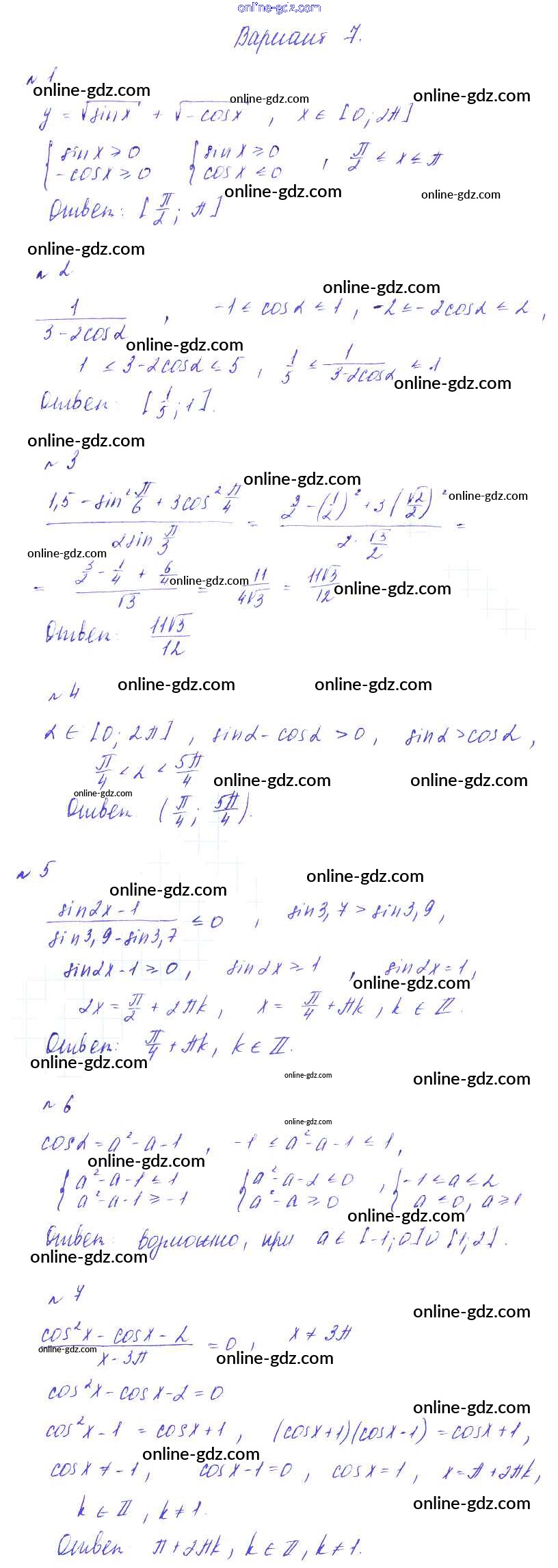 Готовые домашние задания по Алгебре за 9 класс Дидактические материалы Зив, Гольдич 2013 - СР-12. Радианная мера угла Самостоятельные работы вариант 7