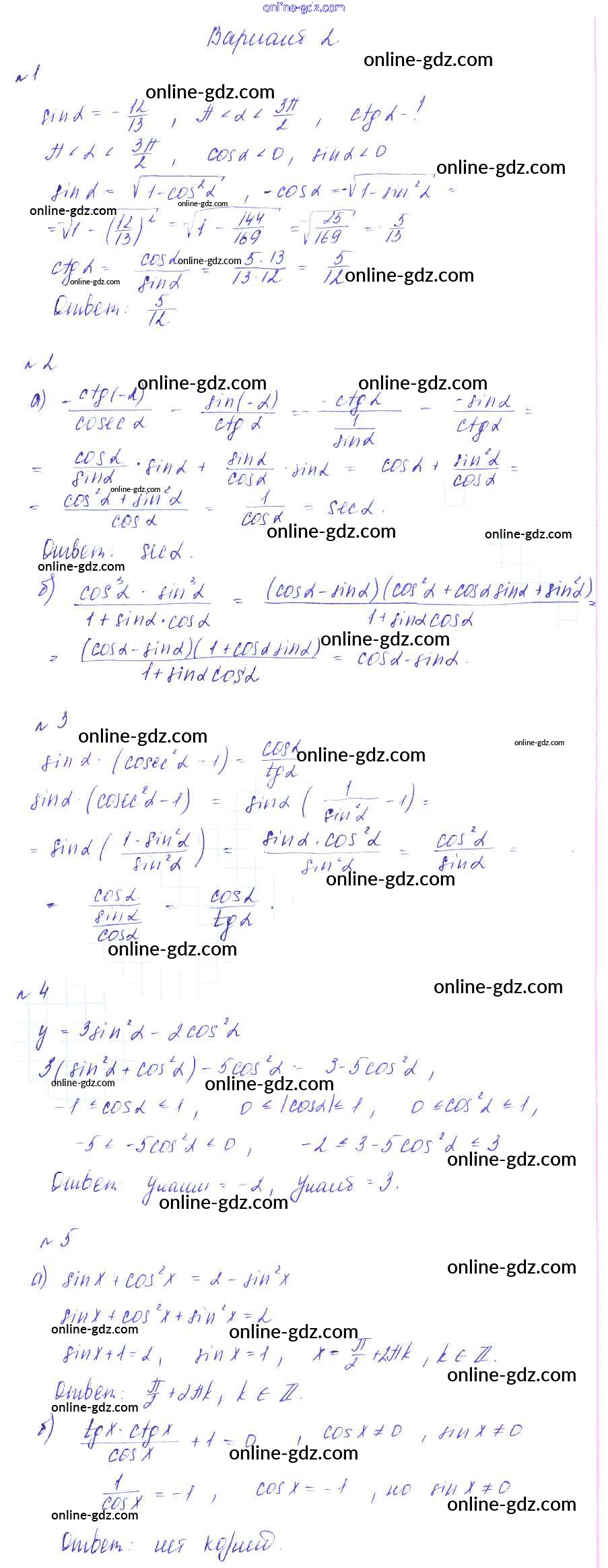 Готовые домашние задания по Алгебре за 9 класс Дидактические материалы Зив, Гольдич 2013 - СР-13. Тригонометрические тождества Самостоятельные работы вариант 2