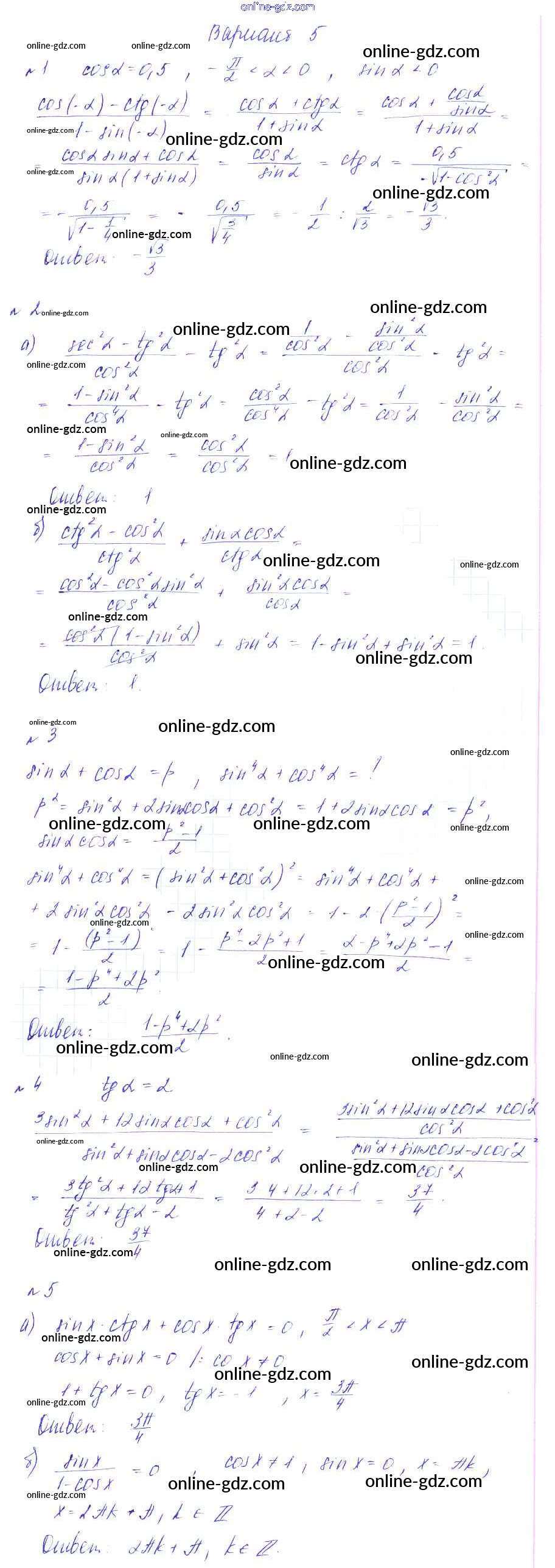 Готовые домашние задания по Алгебре за 9 класс Дидактические материалы Зив, Гольдич 2013 - СР-13. Тригонометрические тождества Самостоятельные работы вариант 5