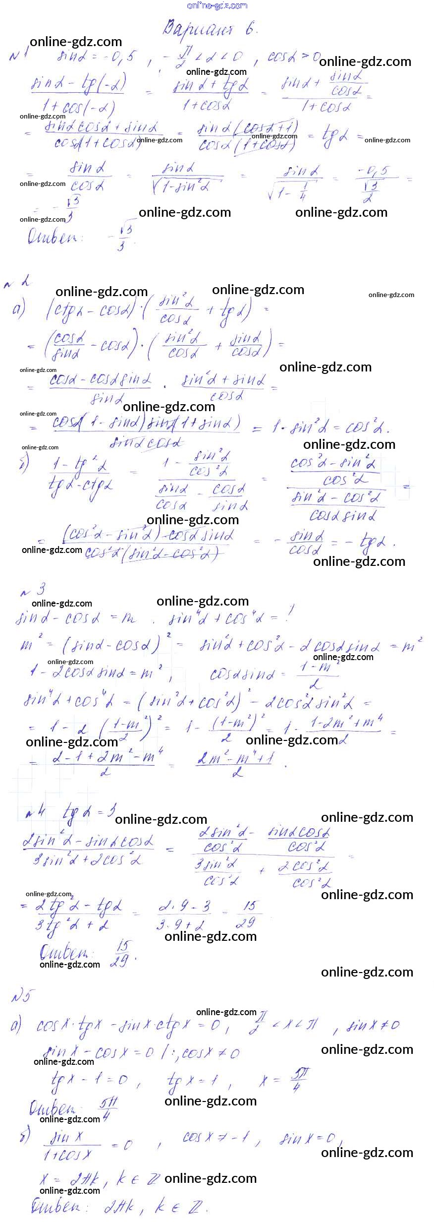 Готовые домашние задания по Алгебре за 9 класс Дидактические материалы Зив, Гольдич 2013 - СР-13. Тригонометрические тождества Самостоятельные работы вариант 6