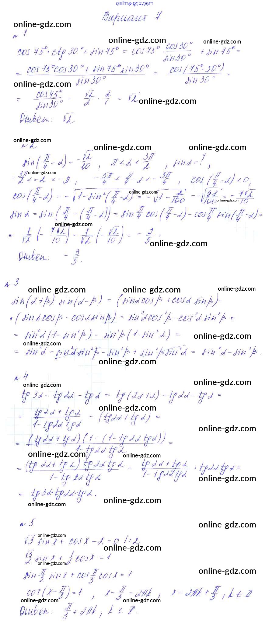Готовые домашние задания по Алгебре за 9 класс Дидактические материалы Зив, Гольдич 2013 - СР-14. Формулы сложения Самостоятельные работы вариант 7