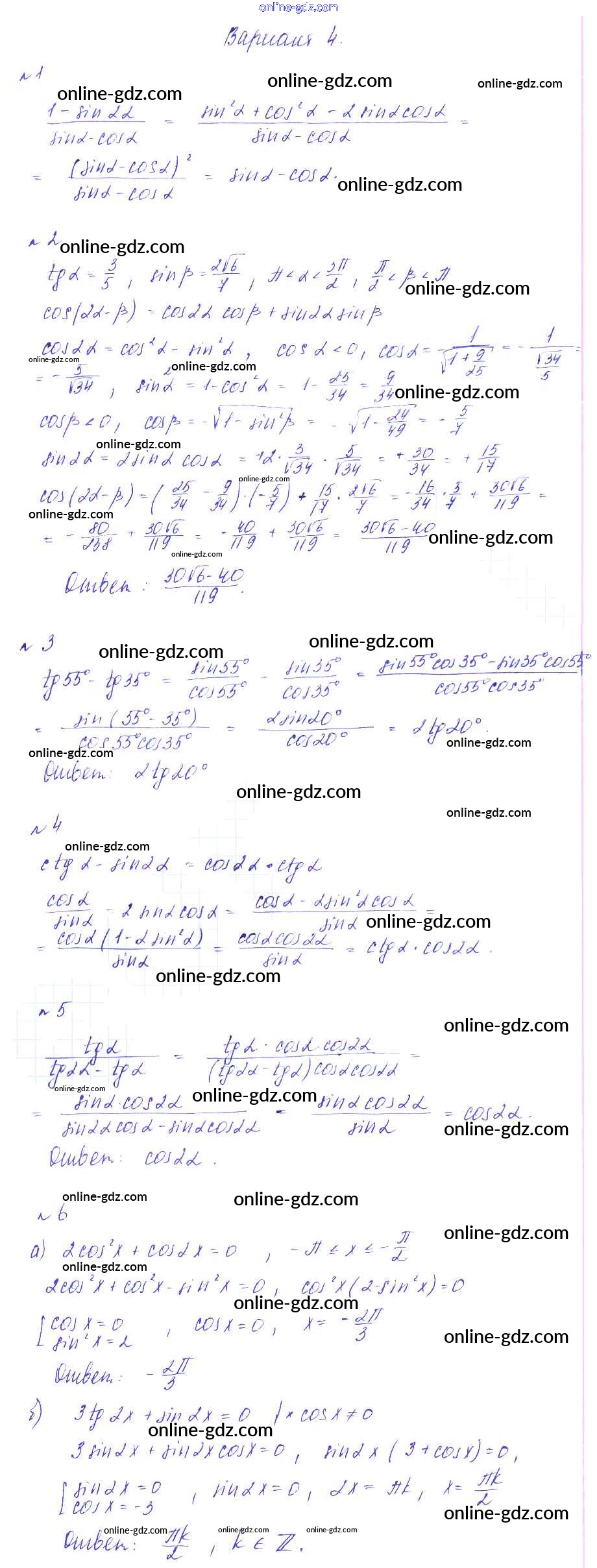 Готовые домашние задания по Алгебре за 9 класс Дидактические материалы Зив, Гольдич 2013 - СР-15. Синус и косинус двойного угла Самостоятельные работы вариант 4
