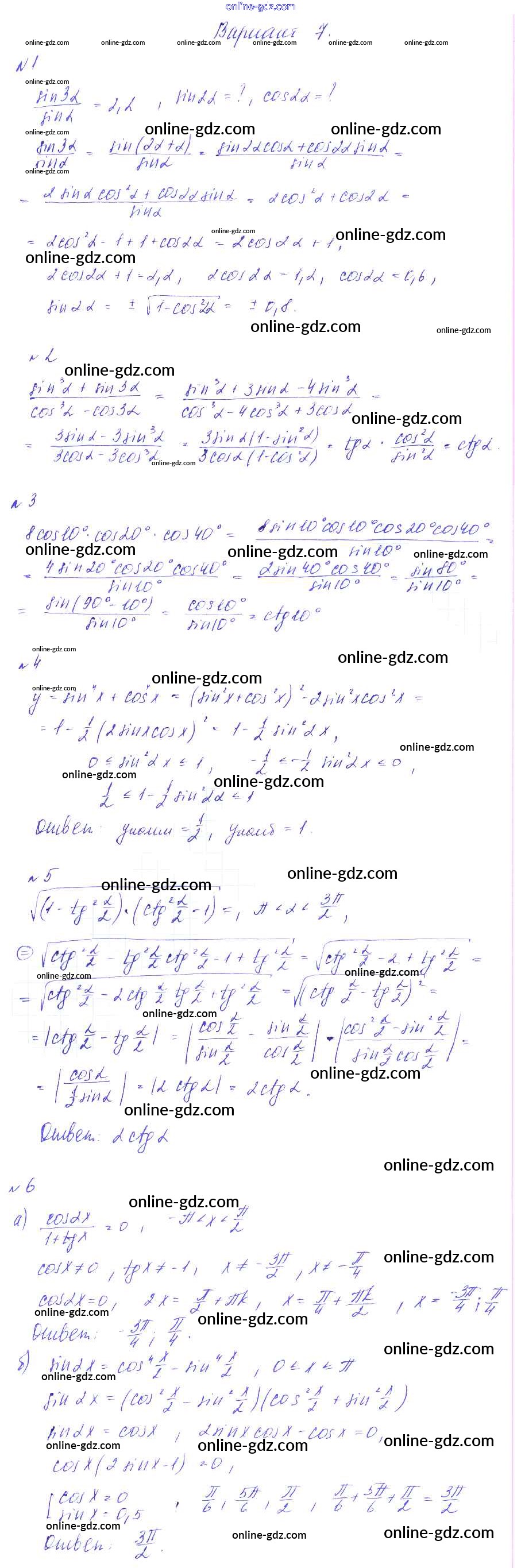 Готовые домашние задания по Алгебре за 9 класс Дидактические материалы Зив, Гольдич 2013 - СР-15. Синус и косинус двойного угла Самостоятельные работы вариант 7