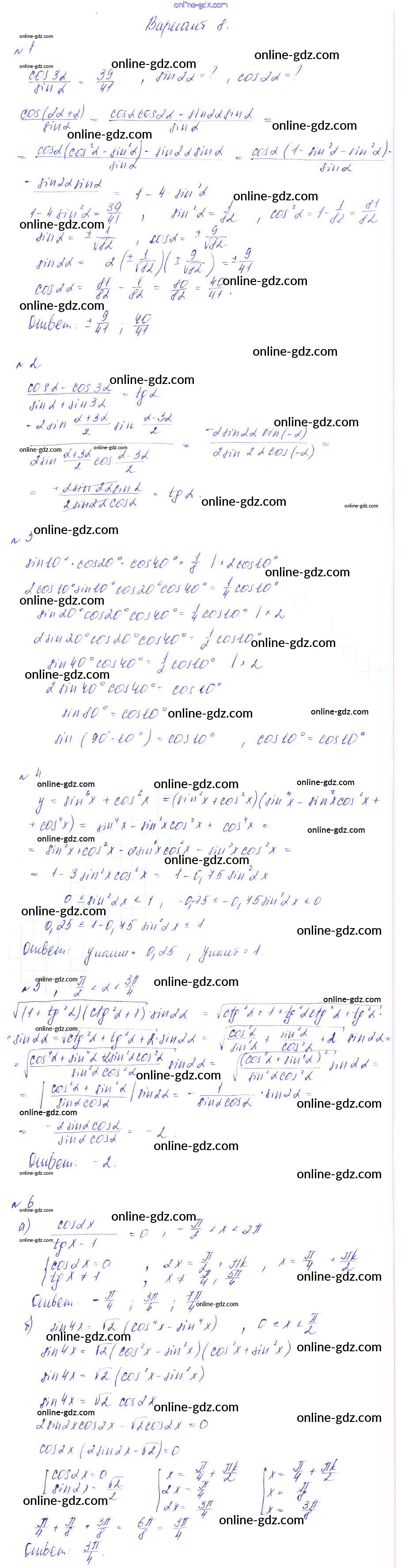 Готовые домашние задания по Алгебре за 9 класс Дидактические материалы Зив, Гольдич 2013 - СР-15. Синус и косинус двойного угла Самостоятельные работы вариант 8