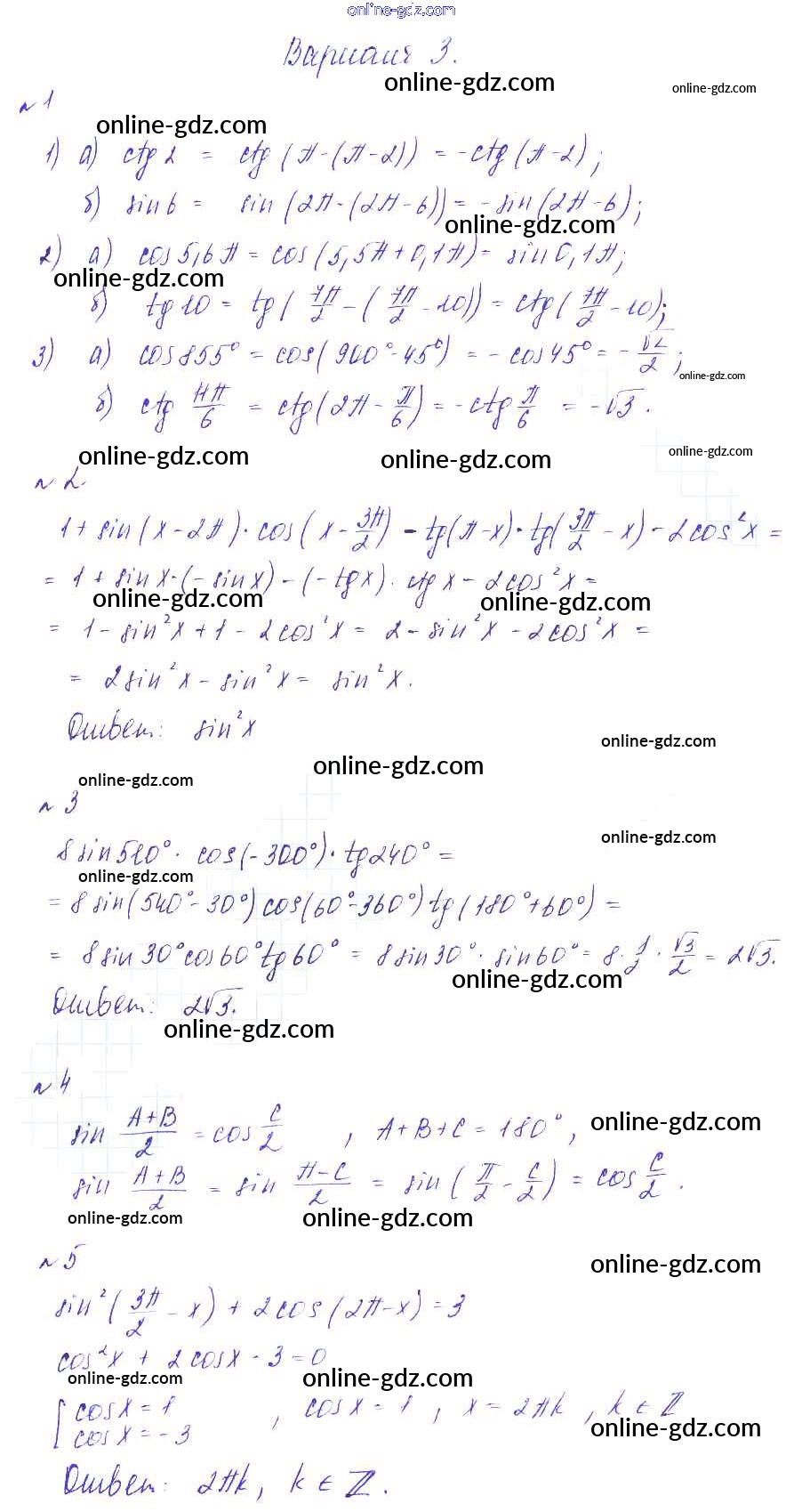 Готовые домашние задания по Алгебре за 9 класс Дидактические материалы Зив, Гольдич 2013 - СР-16. Формулы приведения Самостоятельные работы вариант 3