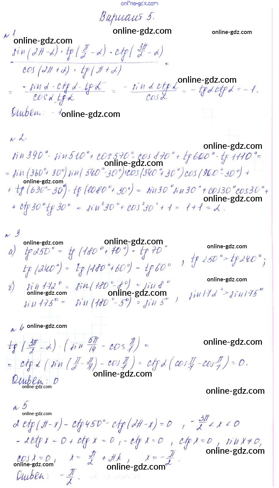 Готовые домашние задания по Алгебре за 9 класс Дидактические материалы Зив, Гольдич 2013 - СР-16. Формулы приведения Самостоятельные работы вариант 5