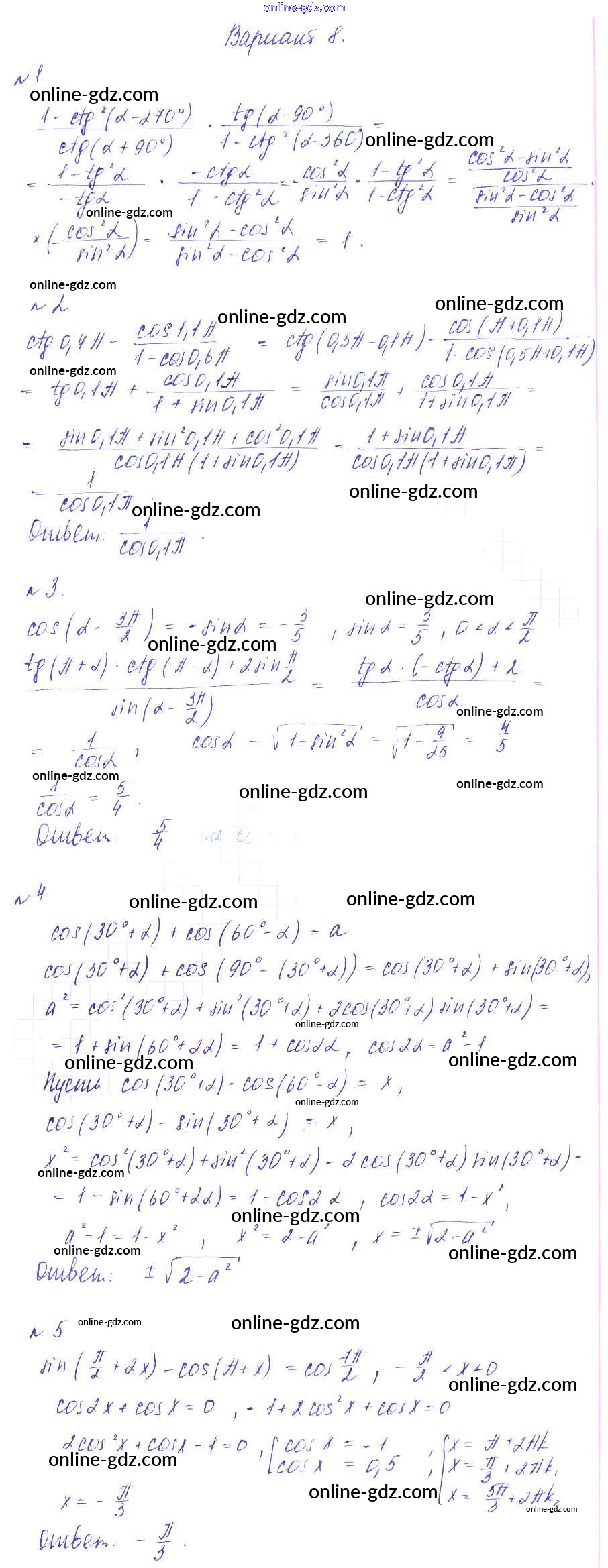Готовые домашние задания по Алгебре за 9 класс Дидактические материалы Зив, Гольдич 2013 - СР-16. Формулы приведения Самостоятельные работы вариант 8