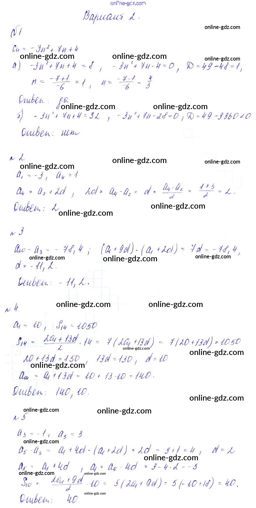 Готовые домашние задания по Алгебре за 9 класс Дидактические материалы Зив, Гольдич 2013 - СР-17. Арифметическая прогрессия Самостоятельные работы вариант 2